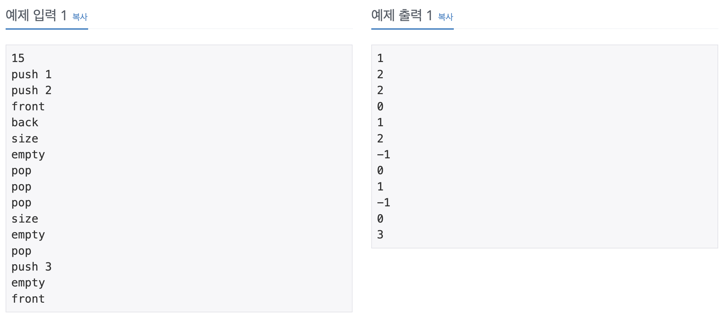 FIFO : 큐의 선입 선출은 맨 먼저 들어온게 제일 먼저 나가고, 제일 늦게 들어온게 제일 늦게 나가는, 즉 줄서기와 같이 순서가 정해져있는 자료구조이다. 그렇다면 맨 먼저 들어온 자료의 정보와 제일 늦게 들어온 자료의 정보를 모두 알아야 구현이 가능할 것이다. - 푼 방법